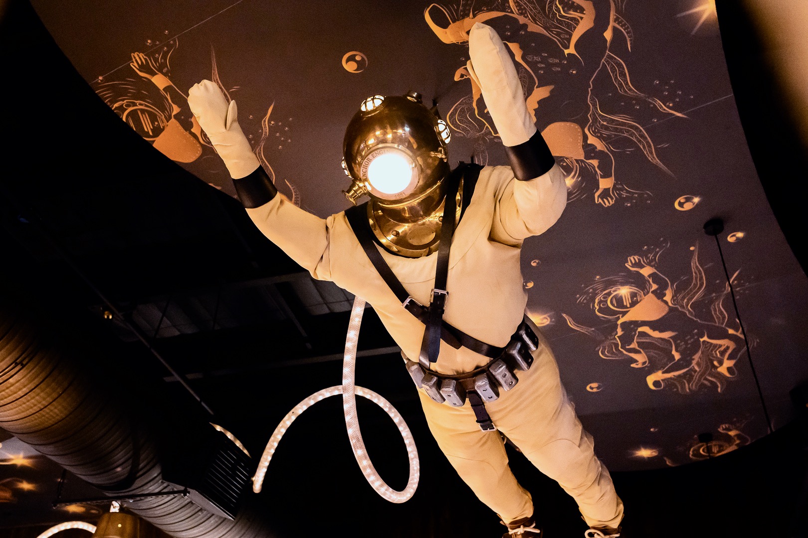 Sea creatures, a life-size pearl driver and a pirate who's probable lost. Dive into this underwater adventure and feel like you’re exploring the deep sea while eating you favourite burgers.